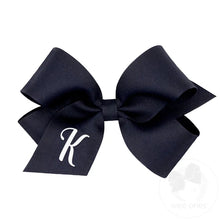 Medium Monogrammed Grosgrain Bow - Navy with White