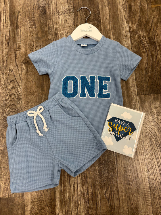 One Blue Waffle Chenille
